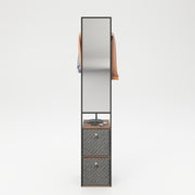 PLAYBOY - Garderobe "MARLENE" mit Spiegelfront, 3 offenen Ablagen und 1 Kleiderstange, Schwarz mit Walnuss Dekor